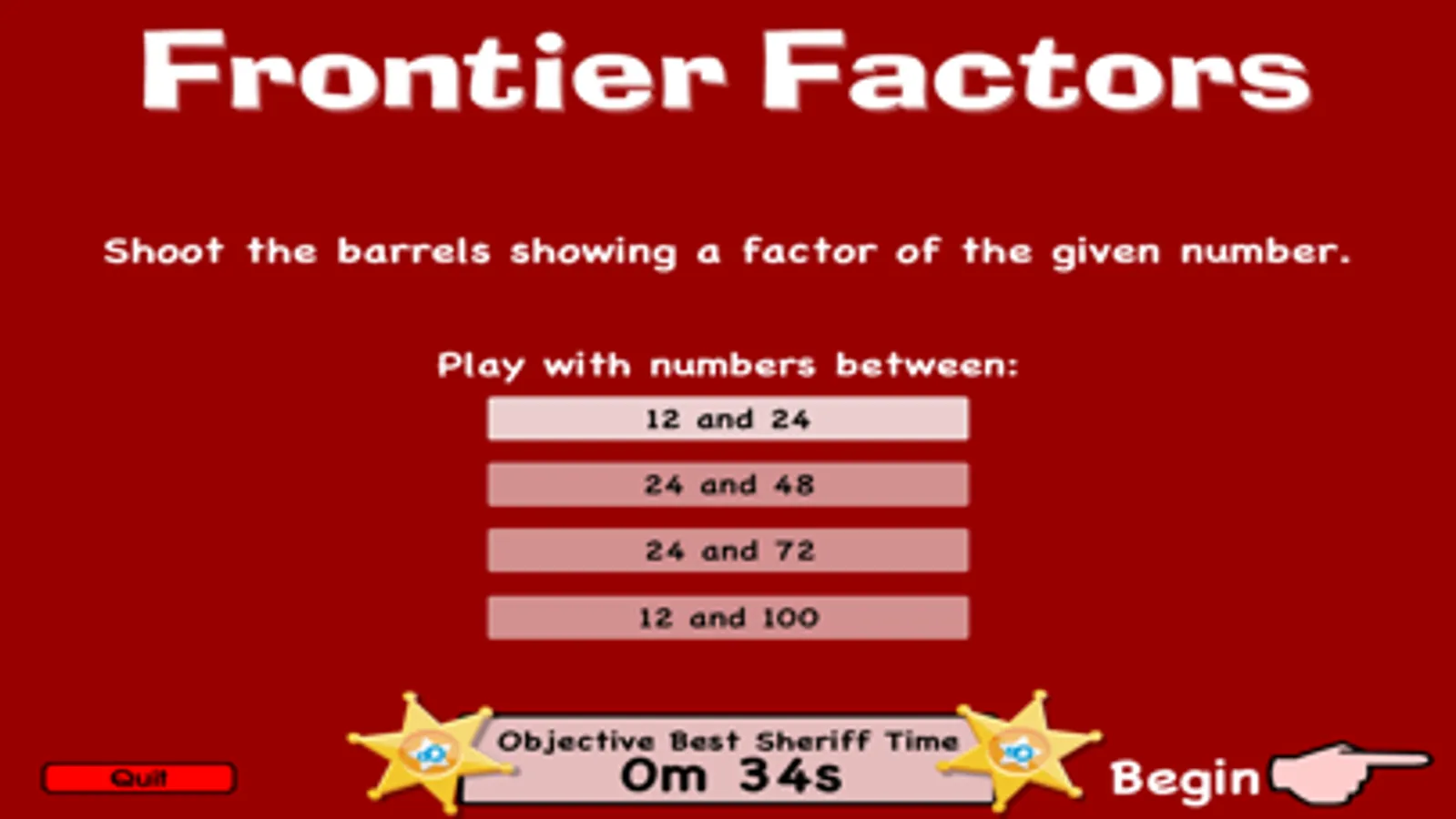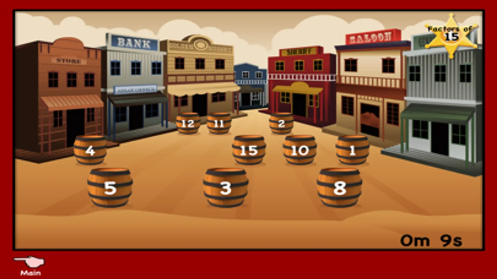 Take a mathematical journey to the Wild West. Prove your worth as Sheriff by shooting the barrels that show factors of the given number. (The factors of a number are any numbers that divide into it exactly. This includes 1 and the number itself. For example, the factors of 6 are 1, 2, 3 and 6. The factors of 8 are 1, 2, 4 and 8.)