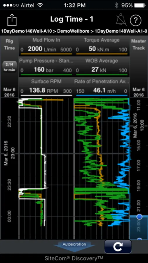 From your iOS device, you can monitor all key information of your drilling activities in real time including the ability to set up displays, configure alarms and alerts and graphically monitor drilling progress. Discovery Mobile ™ provides the user with the robust and powerful access they are used to from Discovery Web, with the convenience of a handheld device.