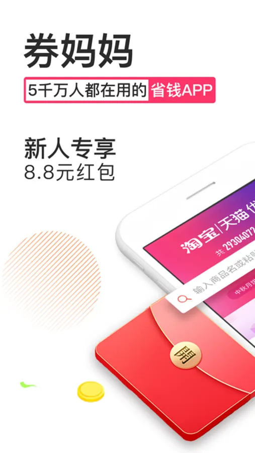 【红包金币】签到红包领不停,新人更有最高8.8元大红包。券妈妈还是一款兼职赚钱app,赚钱中心功能,让大家可以通过做任务赚取金币兑换现金,做兼职赚钱,省钱的同时还能轻松赚钱哦。