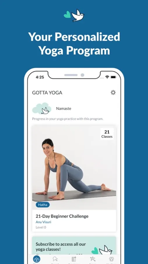 Select your introductory program: beginner or advanced. continue with you preferred yoga program: for your morning, for your hips, for meditating etc. There are several practices that you can try for free. The rest can be used by subscribing to Gotta Yoga.