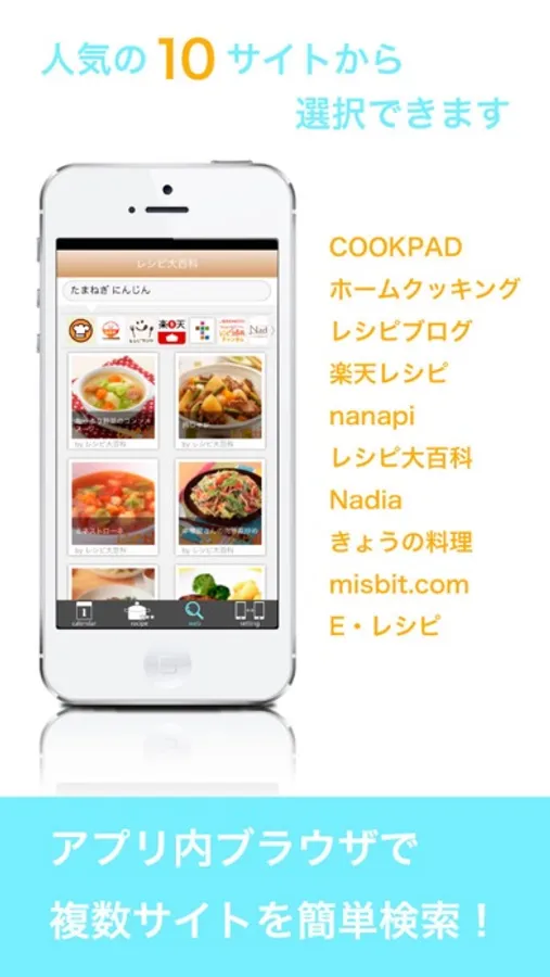 ●アプリ内ブラウザで複数のレシピサイトを簡単検索できる