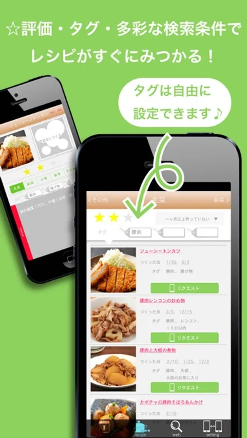 ●評価・タグ・多彩な検索条件(ここ1ヶ月作っていないレシピ等)で、その日に作りたいレシピがすぐにみつかる