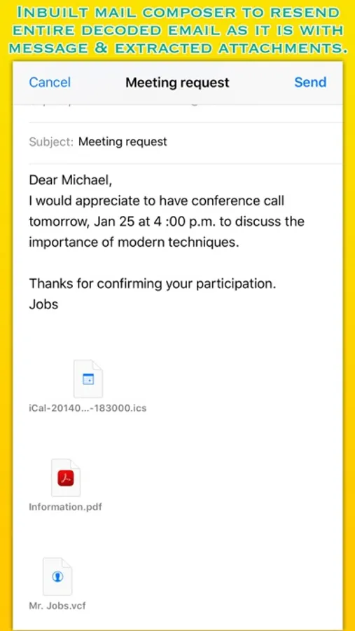 ◆ Inbuilt quick-look preview to view attachments. Tap on attachment button to popup quick-look preview.