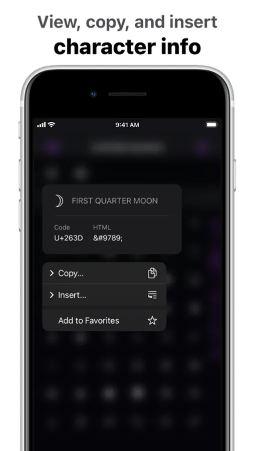 ◆ Copy character info to your iPhone’s clipboard