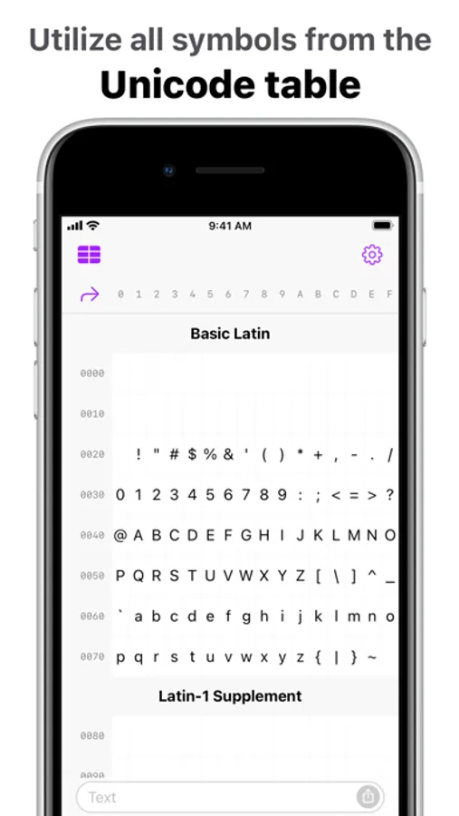 ◉ Access the entire Unicode table by character blocks