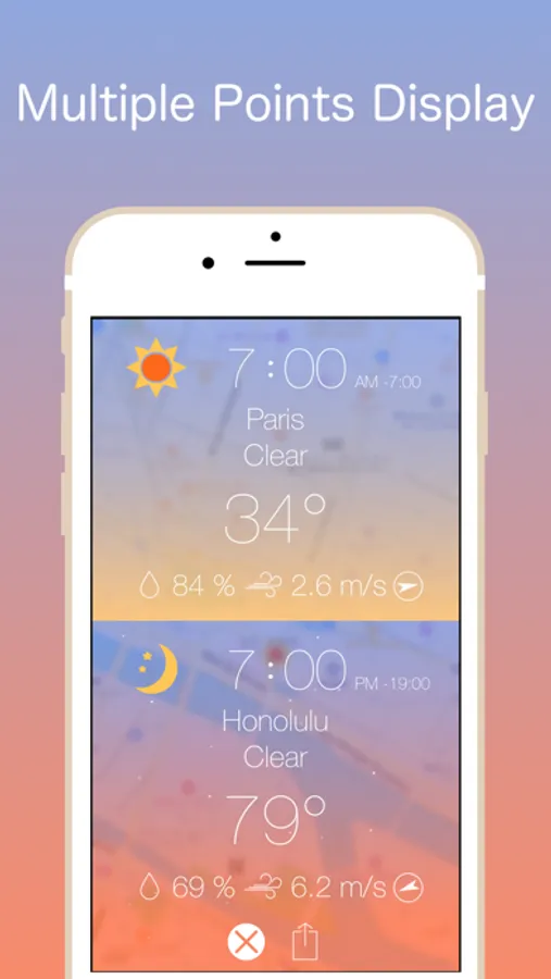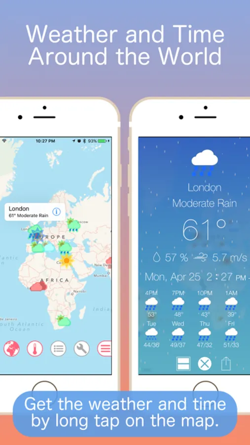 ・Add weather icon by long-tap on the map.