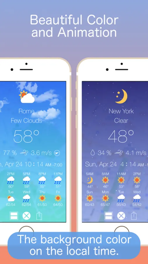 ・Beautiful background gradation color based on local time. (Morning, day, evening, night)