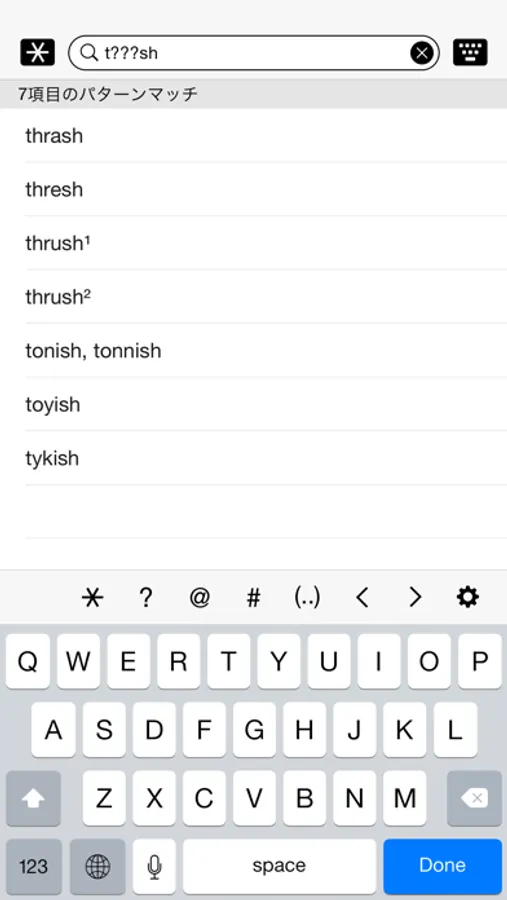 - パターン検索(任意の文字、母音・子音、グループ、アナグラム)