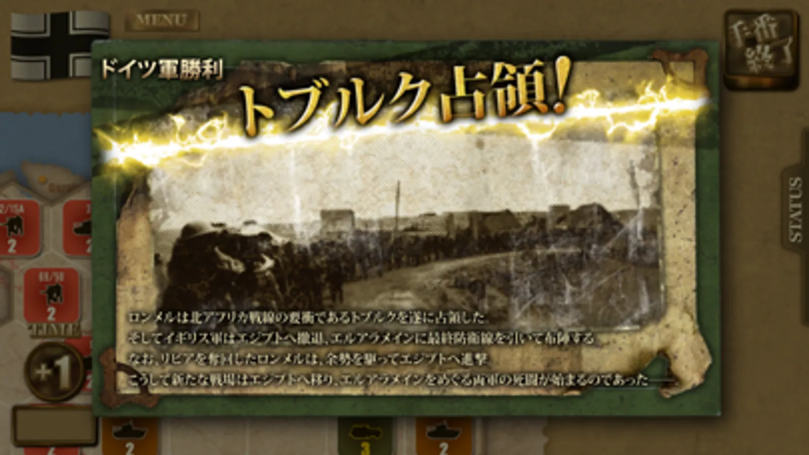 WWⅡの北アフリカにて、イタリア軍を助ける為に派遣されたドイツアフリカ軍団は快進撃を続けるものの、補給量に勝る連合軍の反攻を受けてあえなく後退。戦力を整えて再度進撃を試みる。要所トブルクの前面にガザラ陣地を構築した連合軍に対し、その陣地を迂回する作戦を立てて行動を開始した。