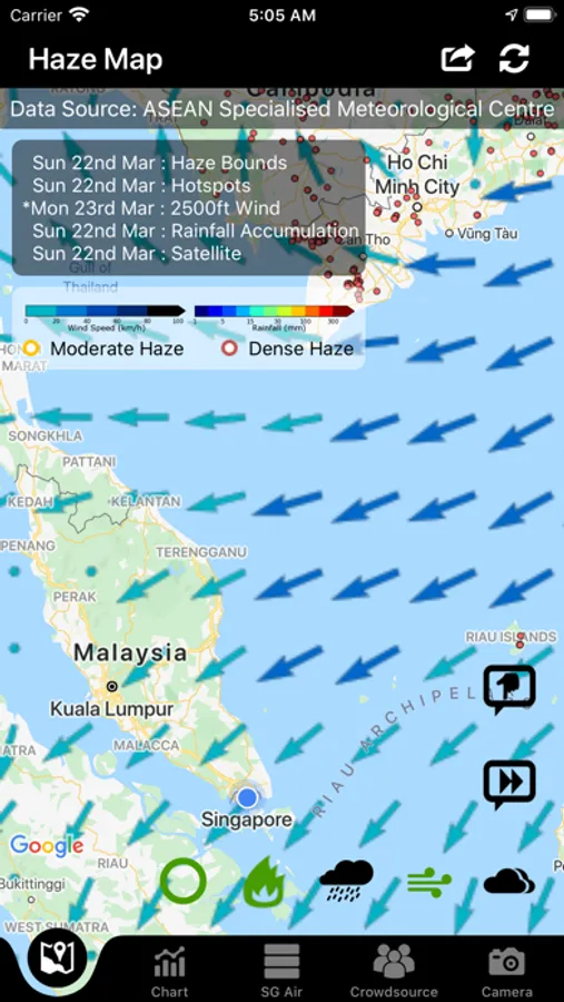 - Haze map with wind direction, hotspots location and haze coverage (Map update on evening everyday)