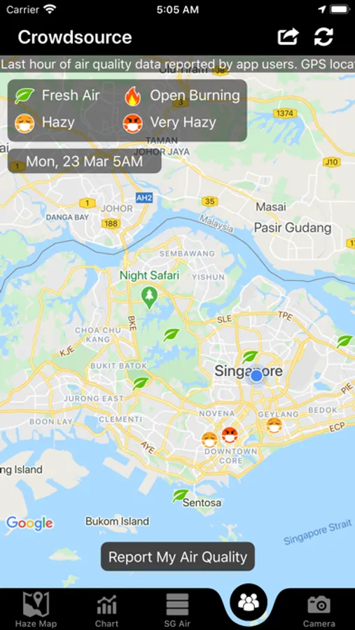 - Crowdsource air quality report - check out nearby air quality reported by app users.