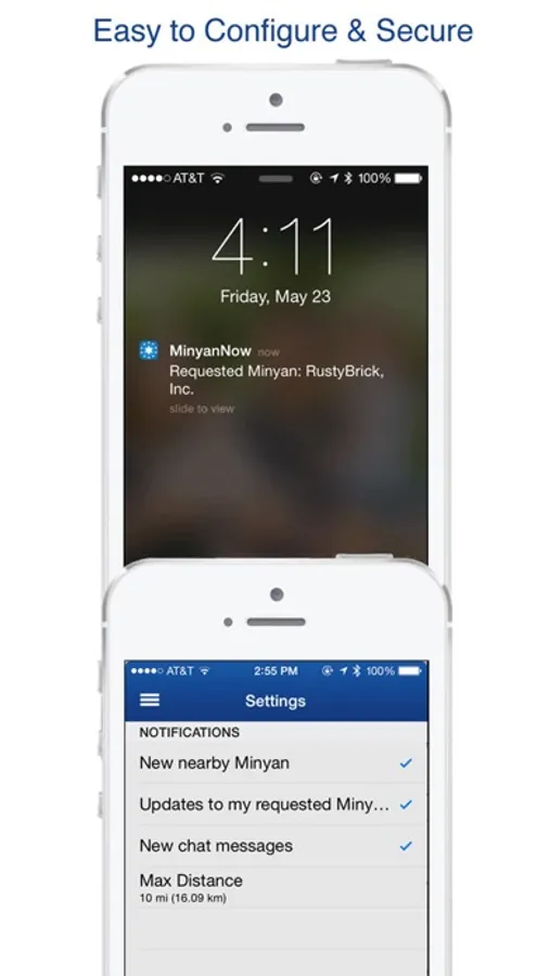 Note: You must enable location services for this to work. The default distance to be notified of a Minyan is 1 mile, you can change this distance within your settings.