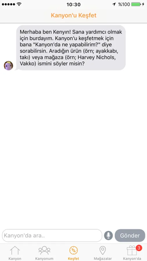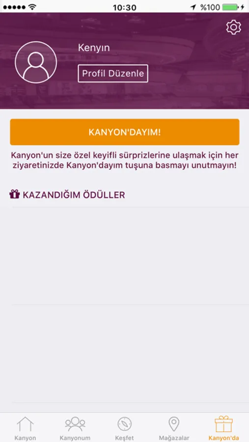 - Kanyon ziyaretlerinizde Kanyon'dayım tuşuna basarak sürpriz hediyeler kazanabilirsiniz!