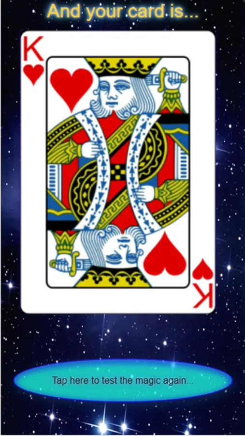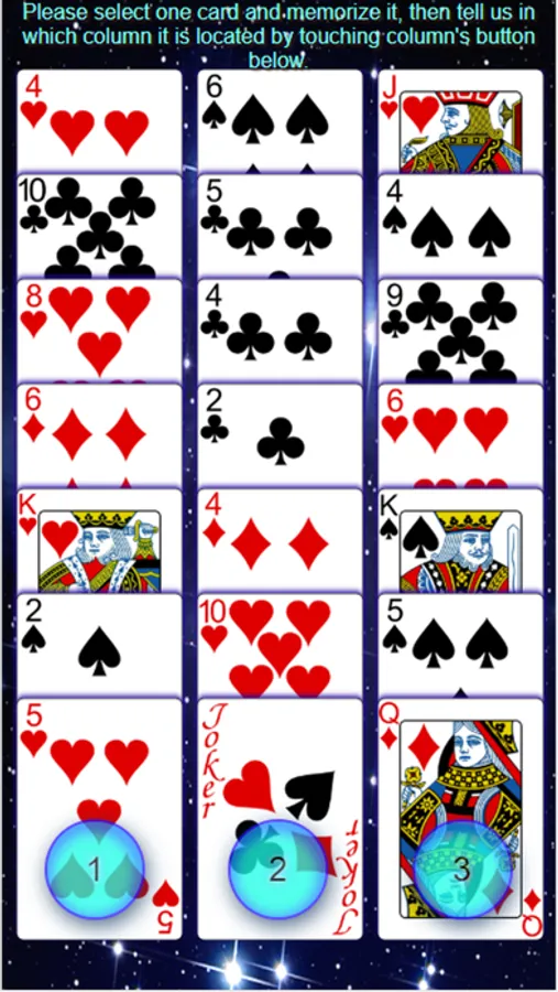 This game is simple and fun: you remember one card from the display and the program guesses which one it was in 3 turns. Try it and show it to your friends!