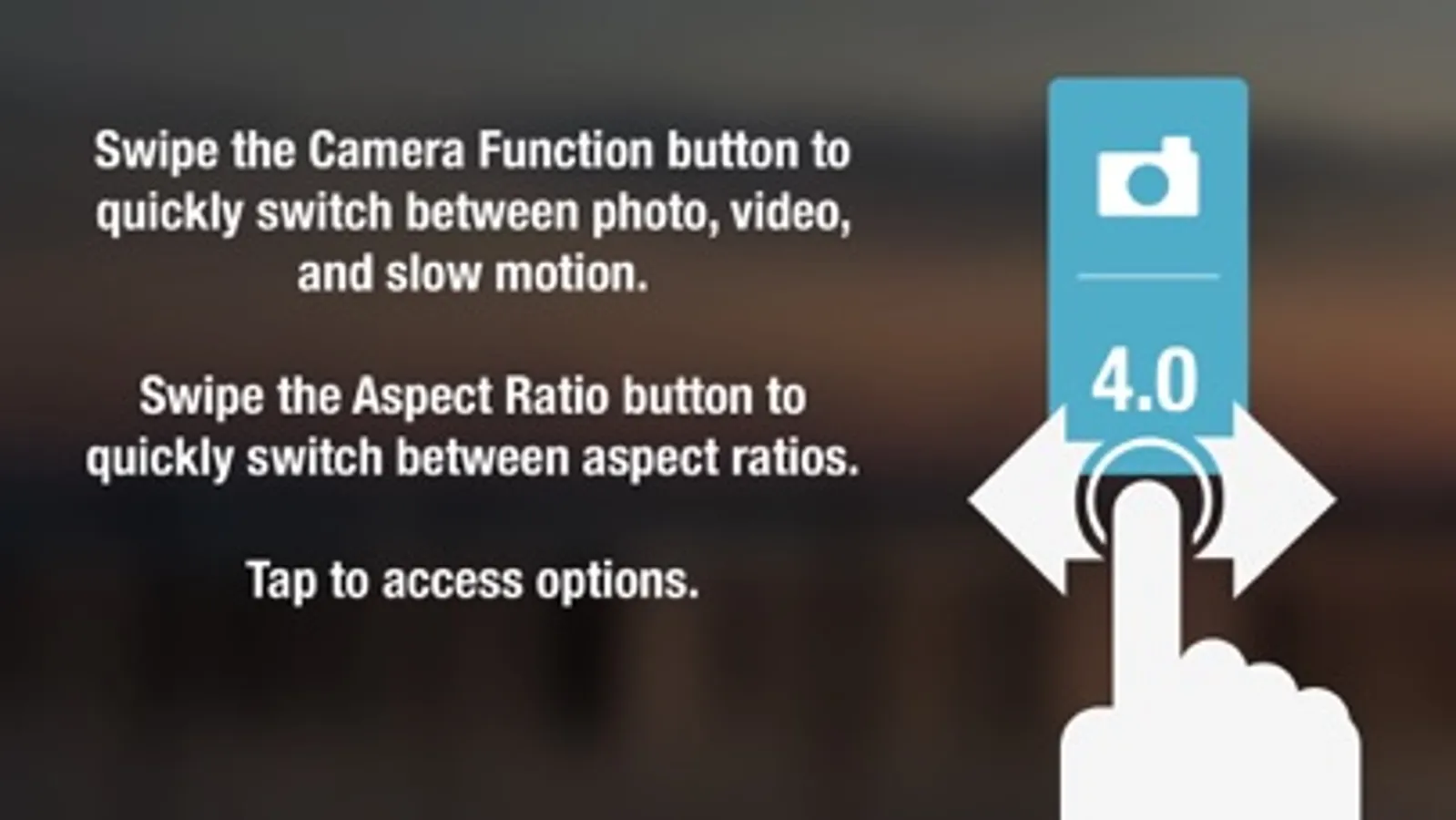 • Swipe left or right on the Camera Function button to quickly move between photo, video, and slow-motion