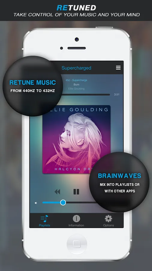 Retuned is finally here! Change music from 440hz back to 432hz - warmer, more crisp, and energizing experience. Take control of your mental state through binaural sound therapy techniques. Increased memory, stamina, concentration, and much more.