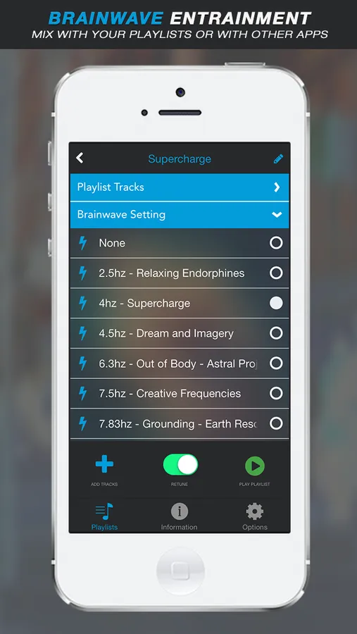 - Creating a playlist with no tracks allows you to mix brainwave entrainment tones into other apps that stream or play music.