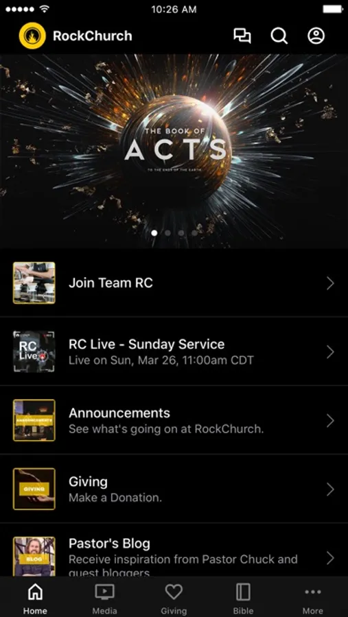 The RockChurch App was developed with the Subsplash App Platform.