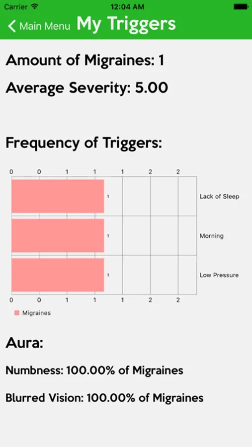 MyMigraine analyzes the data and produces a list of the user's most likely triggers.