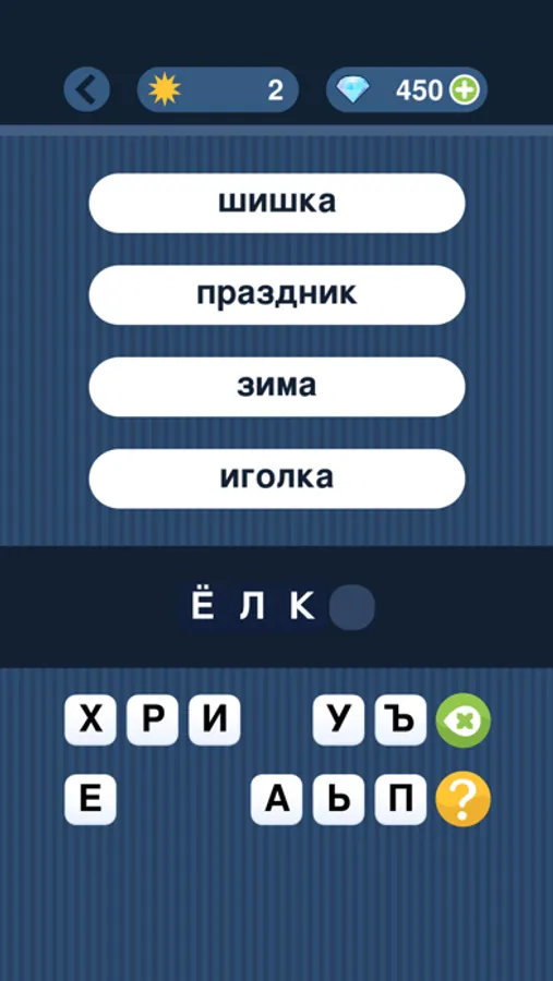 Загадано одно слово и есть четыре наталкивающие слова подсказки (Шишка, Зима, Иголка, Праздник >>> ответ Ёлка), это просто и дико увлекательно!