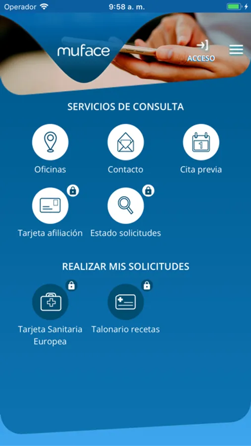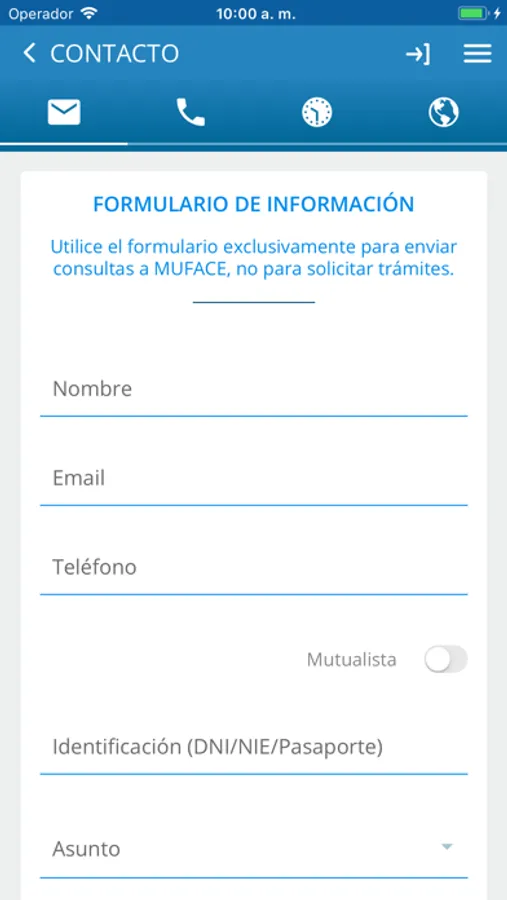 Aplicación que le permite localizar oficinas de Muface y datos de contacto, así como enviar cualquier consulta a la Entidad.