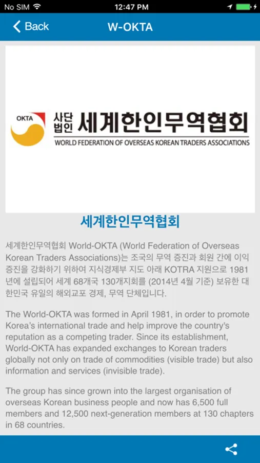세계해외한인무역협회 (World OKTA: World Federation of Overseas Korean Traders Association)는 조국의 무역 증진과 회원간의 이익증진을 강화하기 위하여 지식경제부 지도 아래 KOTRA 지원으로 2013년 현재 세계 65개국 123지회를 설립한 대한민국 유일의 국제적 해외교표 경제, 무역단체입니다.