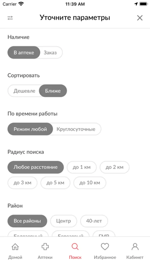 - сервис позволяет искать любые товары аптечного ассортимента: лекарственные препараты, биологически активные добавки (БАД), гигиенические и косметические средства, иные изделия и приборы медицинского назначения;