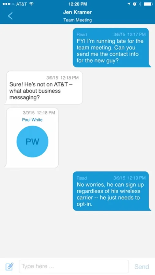 AT&T Business Messenger is a mobile messaging tool for the workplace. Business Messaging allows you to do one-to-one chat, group chat and even broadcast messages to coworkers enhancing productivity and making your business communications easier.
