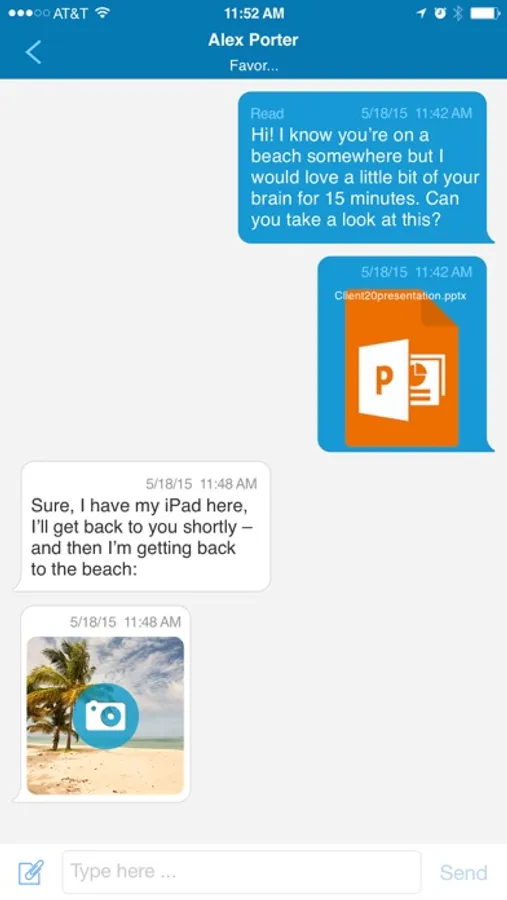 • Attach files, share contacts and locations