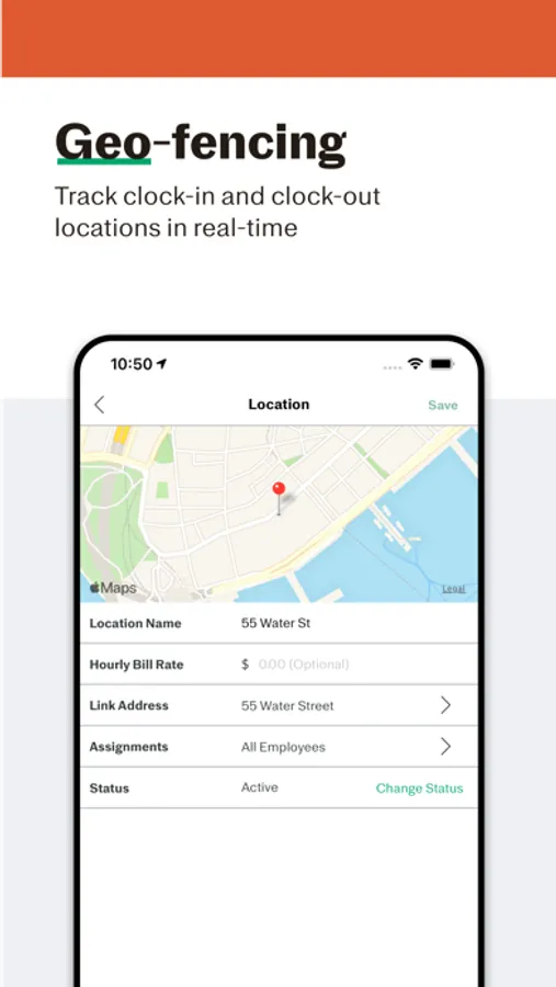 • Verify employee clock-in and clock-out locations with built-in GPS tracking