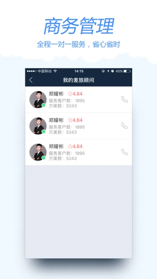 5、一对一差旅顾问:全程所有的产品预订都有一对一服务的差旅顾问,在预订出行过程中遇到任何问题都可以直接差旅顾问进行解决,超级省心;
