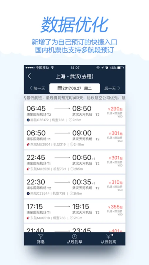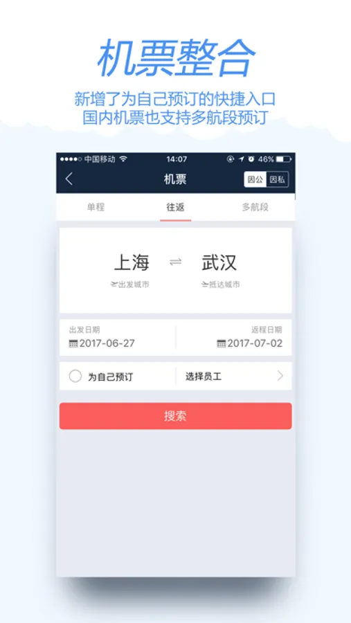 2、提供差旅相关产品:除机票产品外,整合了火车票、酒店、保险、签证等产品,一站式满足您差旅出差产品预订的需求;