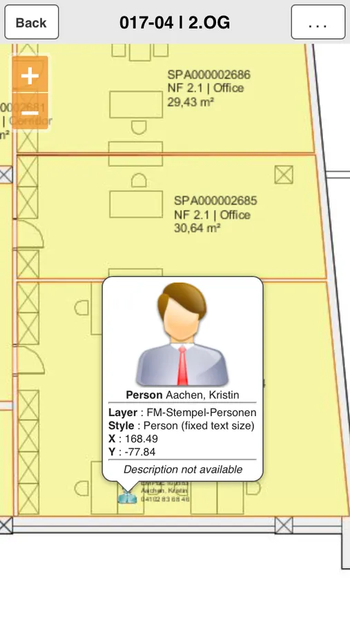 With VisionR Mobile you can access your data on a VisionR Server. Buildings and real estates data on the server like drawings, spaces, contacts, inventory, maintenance check etc. can be searched, viewed and edited.