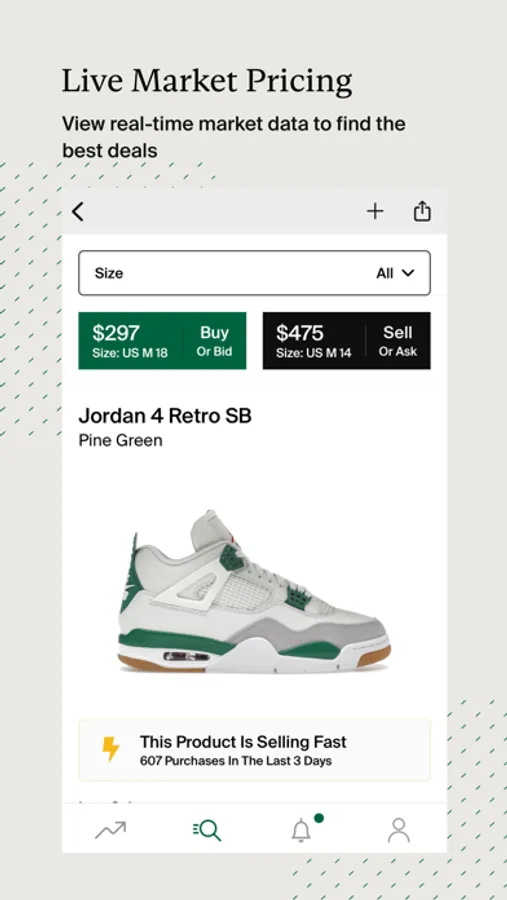 With Live Market Pricing, anyone can view real-time StockX market data to find the best deals. Confidently set Bids and Asks with sales information available on every product page.