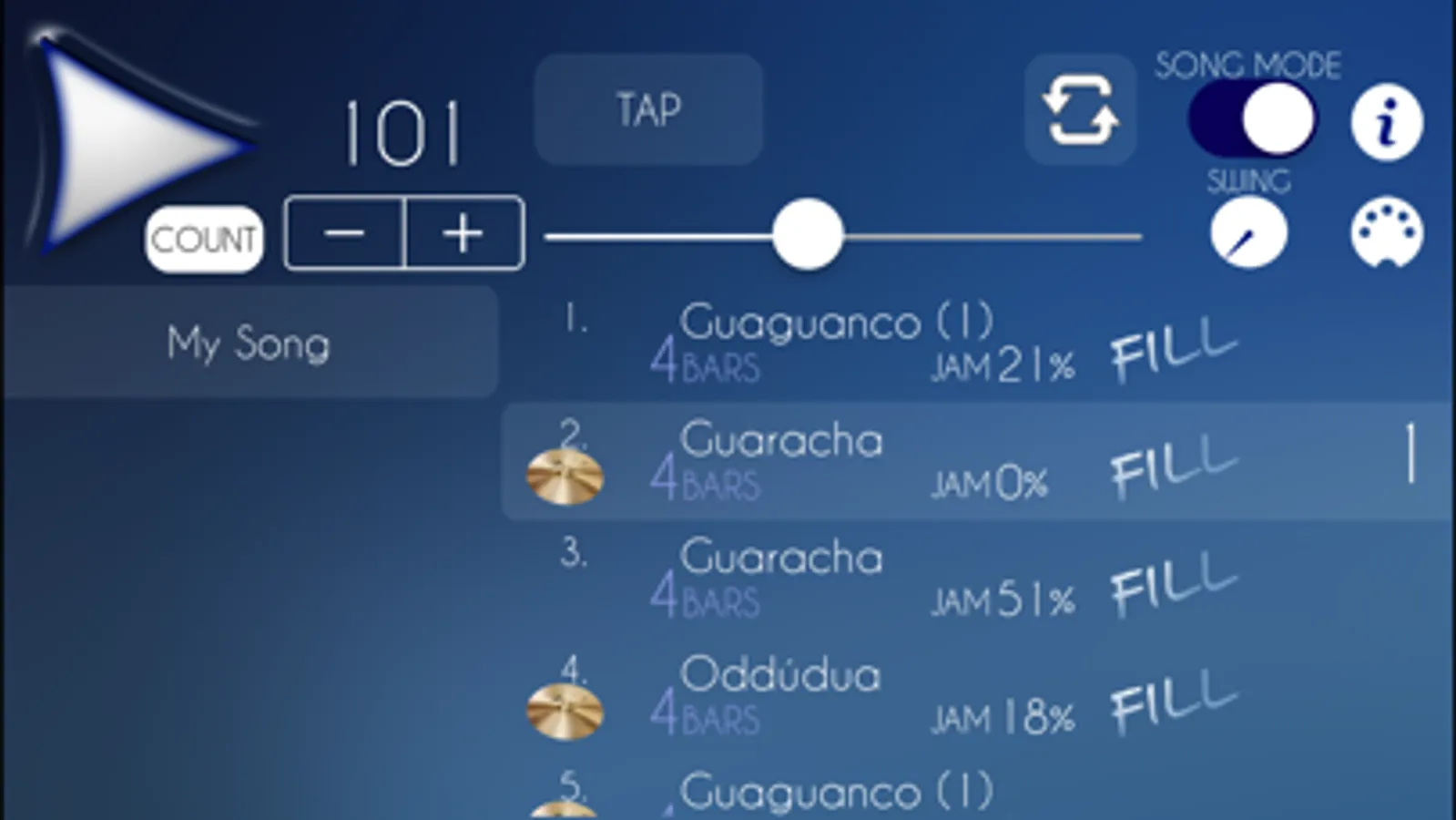 The new Live Pads lets to play live sessions on the way with 8 assignable pads and buttons for fills.