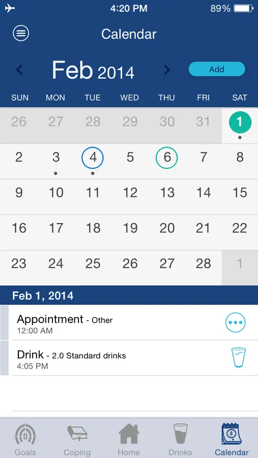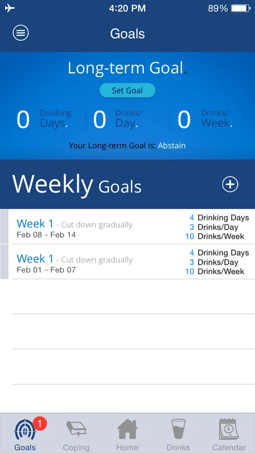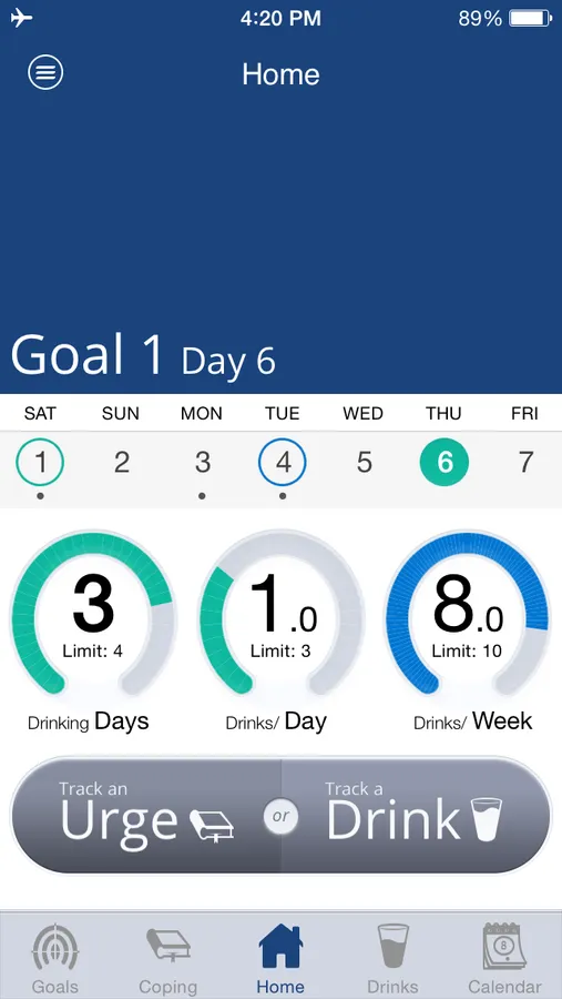 Your personal dashboard will let you know just how you are doing. From here you can track when you have a drink or an urge to drink and you can view your daily stats, monitor your progress and see how you’ve been handling things since you started Saying When.