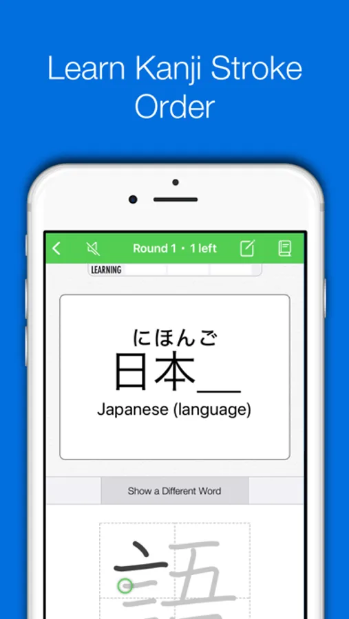 Kanji flashcards prompt you to draw the missing kanji from the words you're studying, creating stronger connections between the characters and their real-world use. Built-in kanji decks give you 2 or 3 key words to study for each kanji.