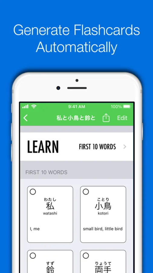 * Built-in kanji flashcard decks up through Middle School.