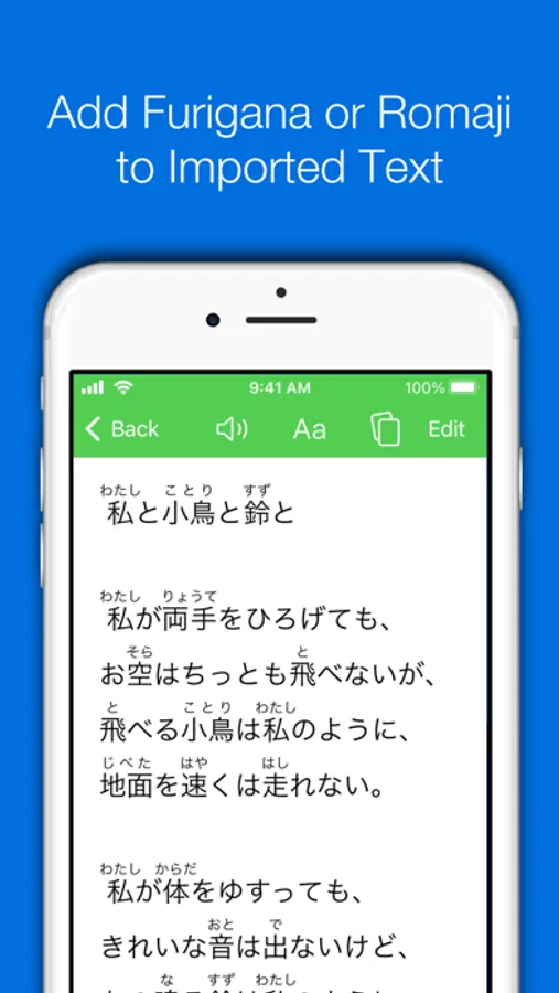 "Clippings", our reading assistant, is what makes Nihongo stand apart from other dictionaries. Paste in Japanese text from a website, email, an eBook, or anywhere else, and we'll add furigana or romaji to every word. We also enable you to tap on any word to see its definition. This will truly change the way you read Japanese. And now, you can get the same experience right in Safari using our Safari extension.