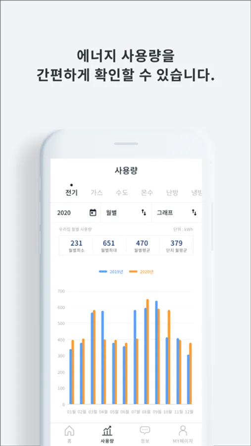 정보(공지사항, 방문자 영상, 에너지 관리)