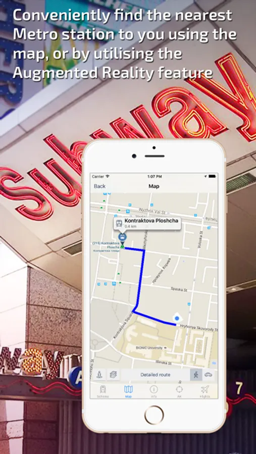 - Find the nearest subway station to you using the Augmented Reality function