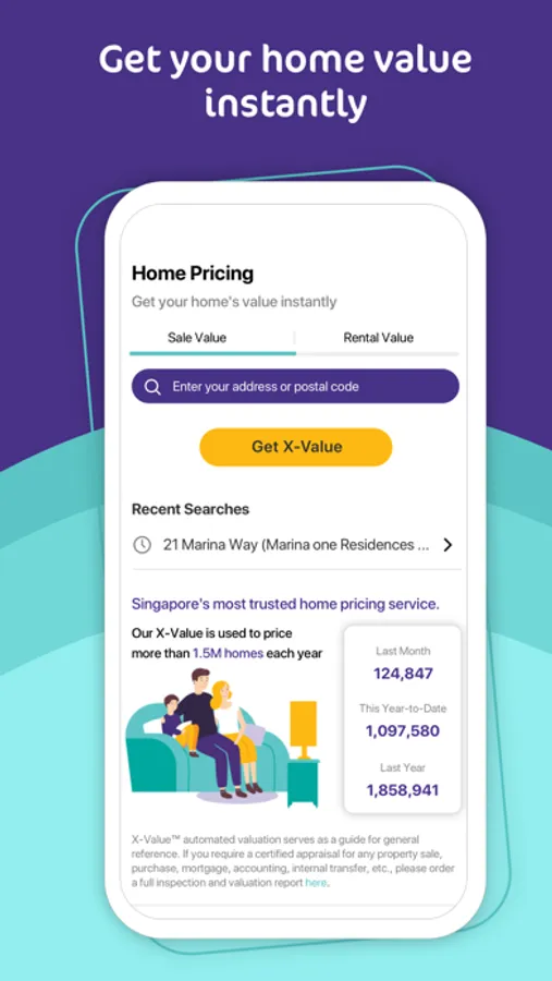 We've been serving Singapore's real estate industry since 2009, when we first launched our Home Report to help property agents and homeowners establish the price to buy, sell or rent a home. In 2014 we introduced X-Value, allowing anyone to get an accurate estimate of the value of their home instantly online. 1.8 million home reports and 7.0 million X-Value calculations later, we're Singapore's most trusted source of home pricing information.