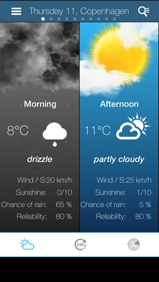 - Probability of sunshine and precipitations