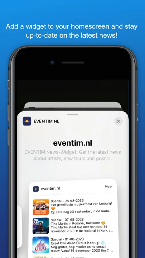 - Add the Eventim News widget to your home screen and stay up to date with the latest news about artists, announcements and sales!
