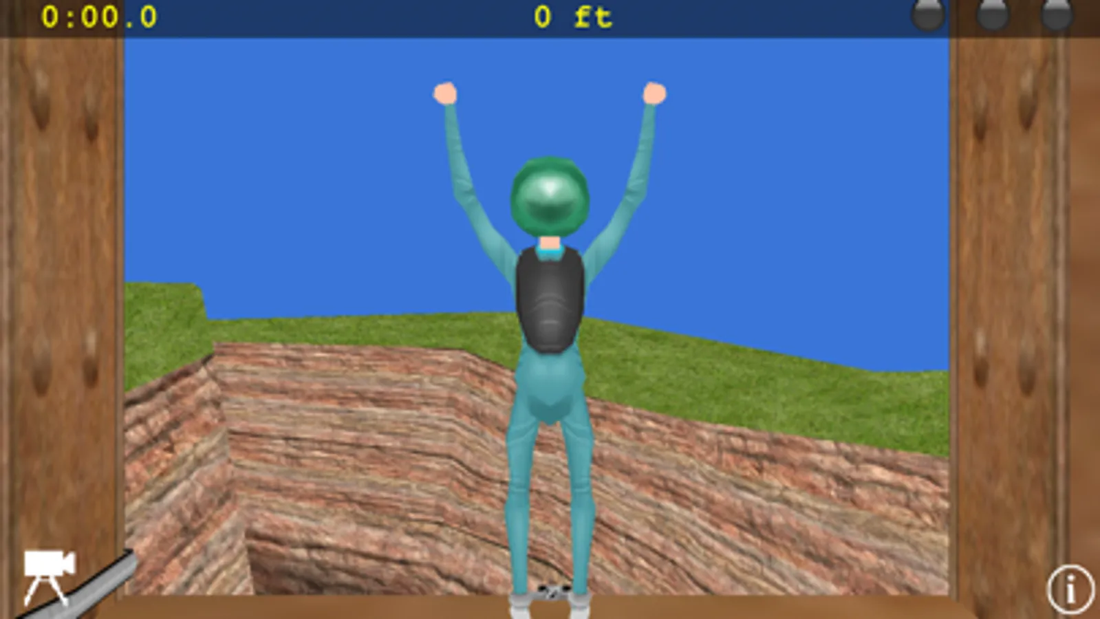 Tilt the top edge of your iPhone forward to lean over the edge of the bridge and start your jump. Rotate iPhone to left or right to steer side to side. Try to pop all 3 red balloons during a single jump while swinging back and forth.