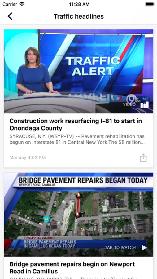See traffic alerts as they happen with the Central New York Traffic App from NewsChannel 9 WSYR and LocalSYR.com.