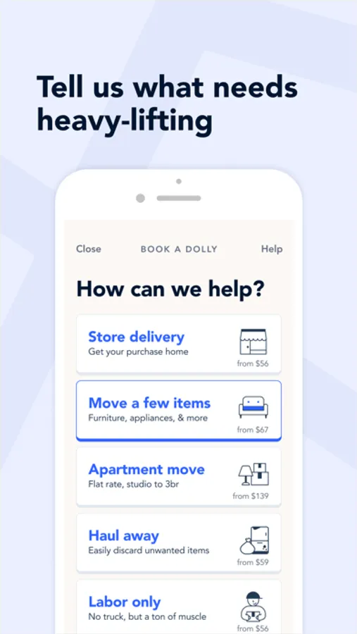 Dolly connects you to trusted, local professionals with pickup trucks, cargo vans, and box trucks to support your moving and delivery needs. Not only are Dolly Helpers trained to move and handle big and bulky items safely and securely, they’re also background-checked and insured—and all Dollys are backed by our Damage Protection program.