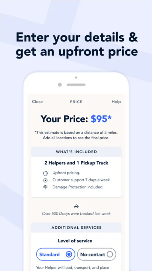 We’re obsessed with customer satisfaction. That’s why Dolly lets you set the schedule for your move or delivery, find out the cost of your Dolly before you book, and have the peace of mind that your Dolly is backed by our Damage Protection program.