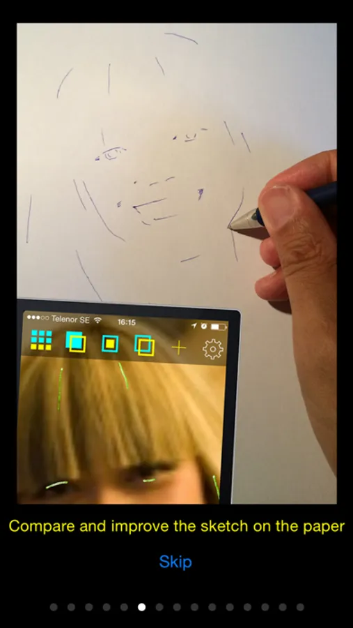 Select or take a picture. Then make a sketch of this photo on a paper. Use PainterTool to take a picture of the sketch and compare your sketch to the original photo. Use the comparison to improve your sketch. Take a new picture of the improved sketch, compare and improve until you are satisfied.