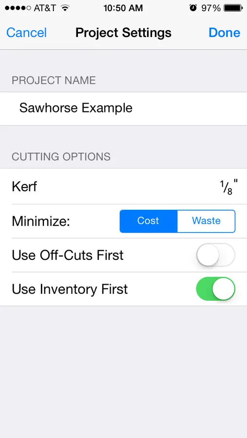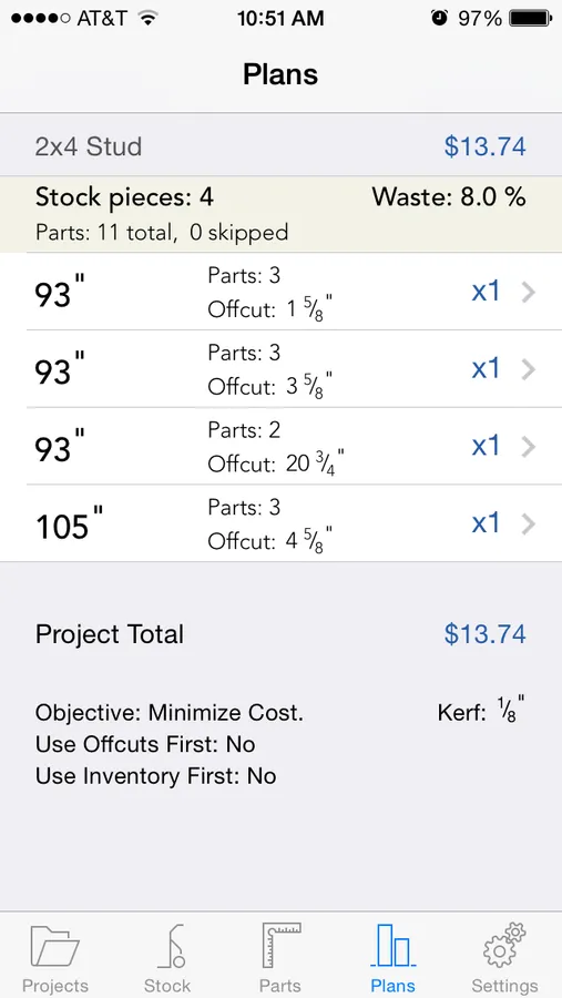 * Optionally tell the app to use your off-cuts and/or inventory before new purchases.